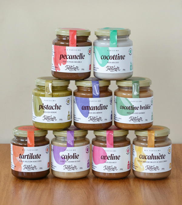 Tartiner is an established brand in the Brazilian market that creates artisanal spreads using only the essentials in each “little jar of happiness”: just almonds, only hazelnuts, pure pistachios, and so on. The packaging redesign marks the brand’s most mature phase. The main challenge was maintaining the clean label concept with a minimalist design that highlights the purity of the spreads. It was also important to make it clear that each jar contains only a few high-quality ingredients.