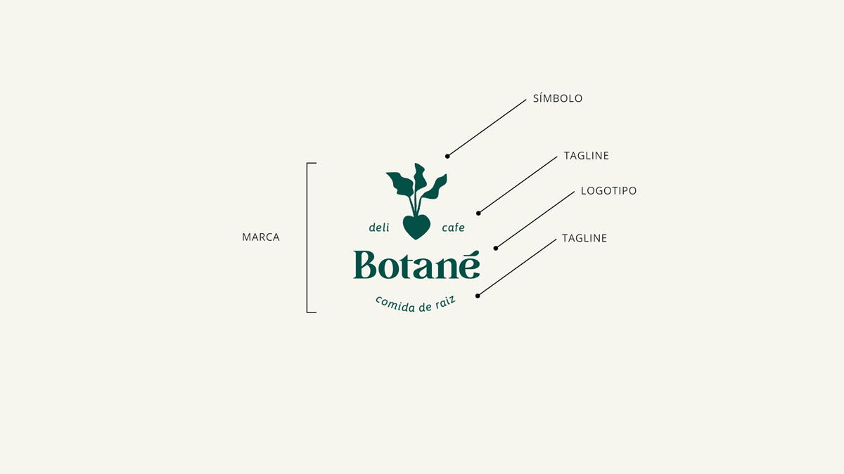 Um bom exemplo disso é o Botané, um deli e café com uma proposta afetiva e cheia de sabor. Quando começamos a desenhar a identidade visual, percebemos que os pratos criados pela chef Josie seguiam uma mesma filosofia: frescor, simplicidade e ingredientes como protagonistas. A marca da Botané nasceu dessa essência. O símbolo escolhido é uma raiz em forma de coração, o que está debaixo da terra, nutrindo a vida, para depois se transformar em alimento para o corpo e para a alma. Ele carrega, de forma sensível, a história de quem cria, de quem cuida e de quem serve.